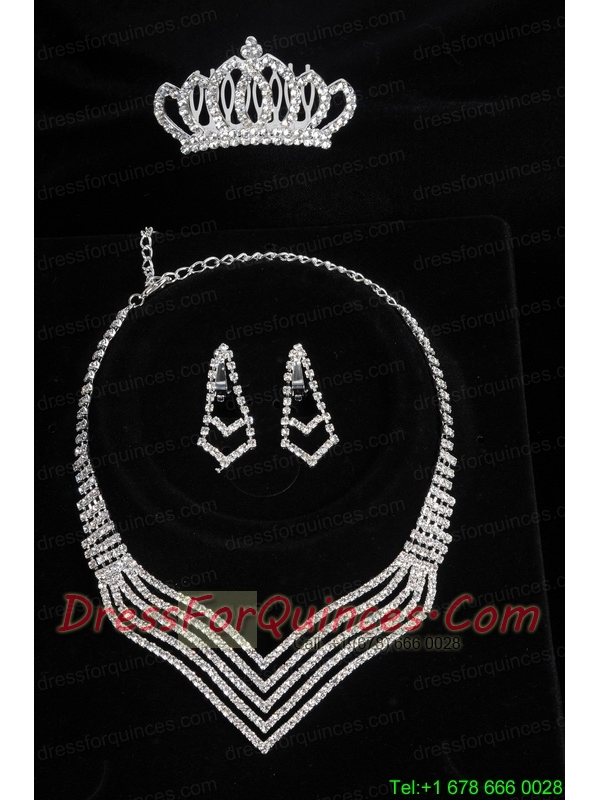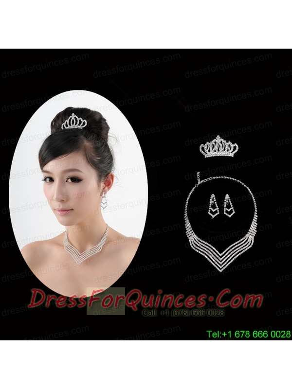 Gorgeous Rhinestone Wedding Tiara Jewelry Set With Necklace and Earrings