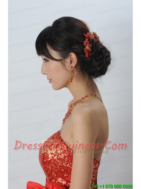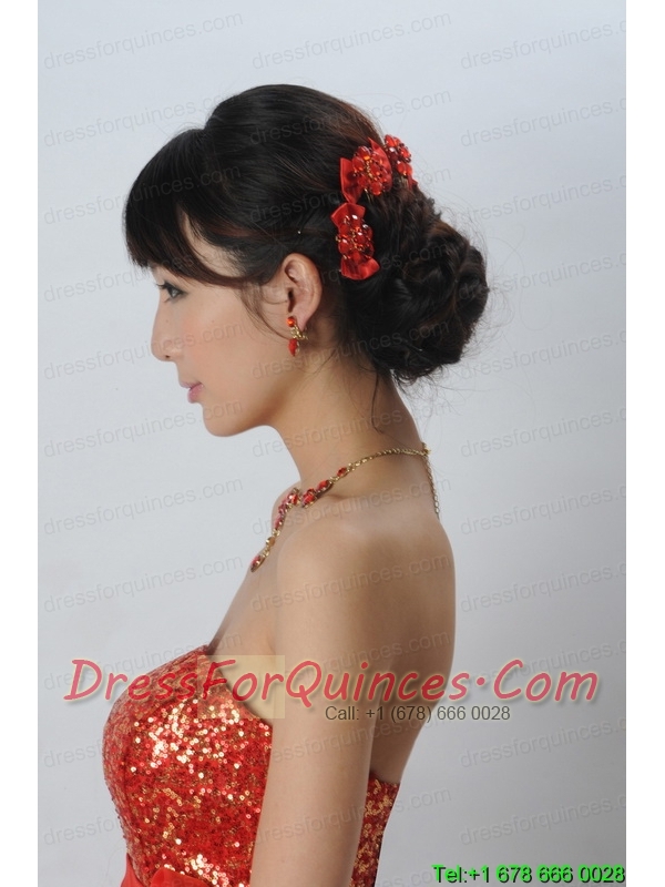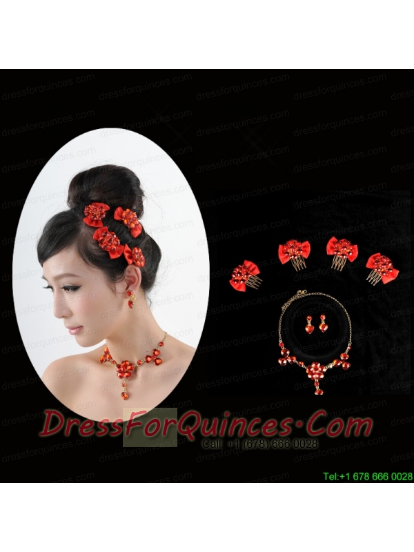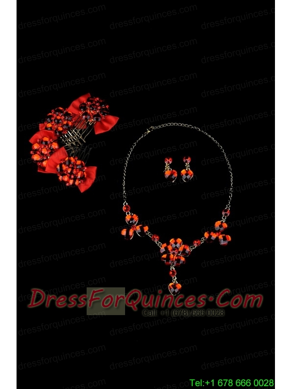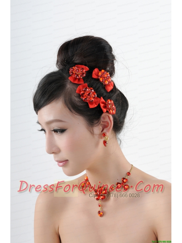 Heart In Heart Red Artistic Jewelry Set Including Necklace And Headpiece