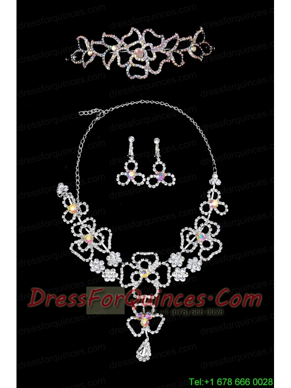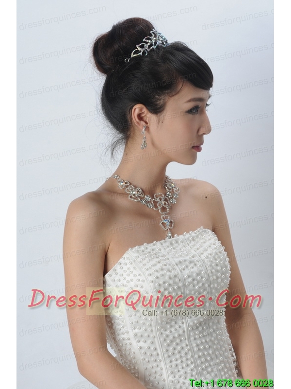 Intensive Flower Dazzling Crystal Jewelry Set Including Necklace And Tiara