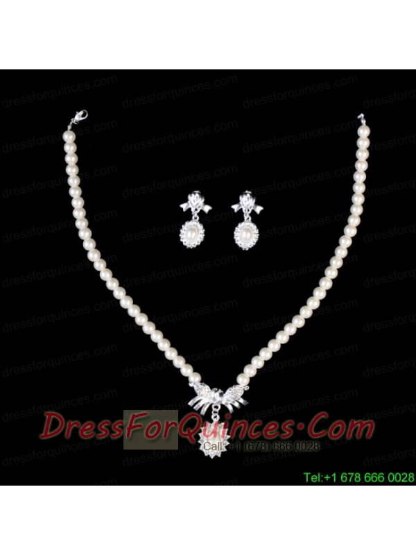 Ivory Pearl Alloy Plated Ladies Necklace and Earrings Jewelry Set