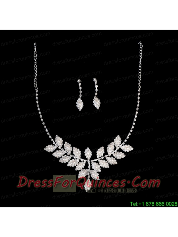 Ivory Pearl Jewelry Set With Rhinestone Including Necklace And Earrings