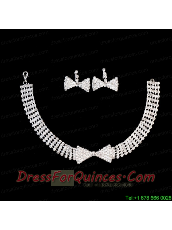 Lovely Bowknot Shaped Rhinestone Bridal Jewelry Set Necklace With Earrings