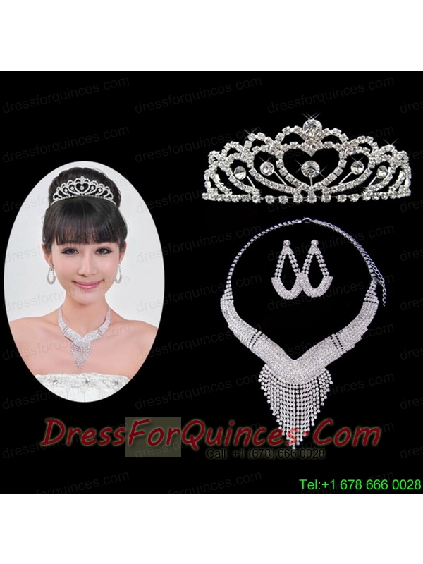 Luxurious Rhinestone Ladies' Jewelry Set Including Necklace And Tiara