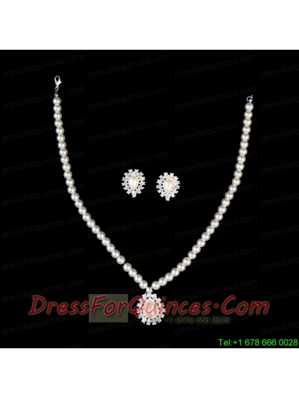 Vintage Style Pearl With Rhinestone Drop Necklace And Earring Set