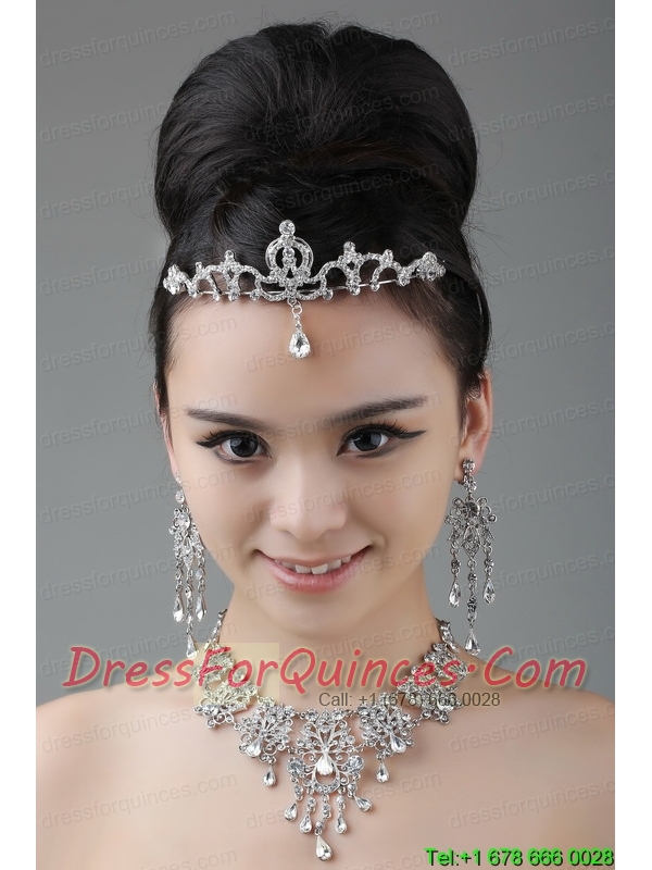 Vintage Style Rhinestone Alloy Jewelry Set Including Crown Necklace And Earrings