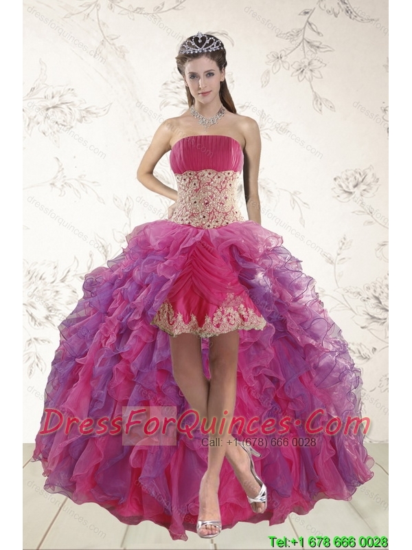 2015 Classical High Low Junior Dresses with Appliques and Ruffles