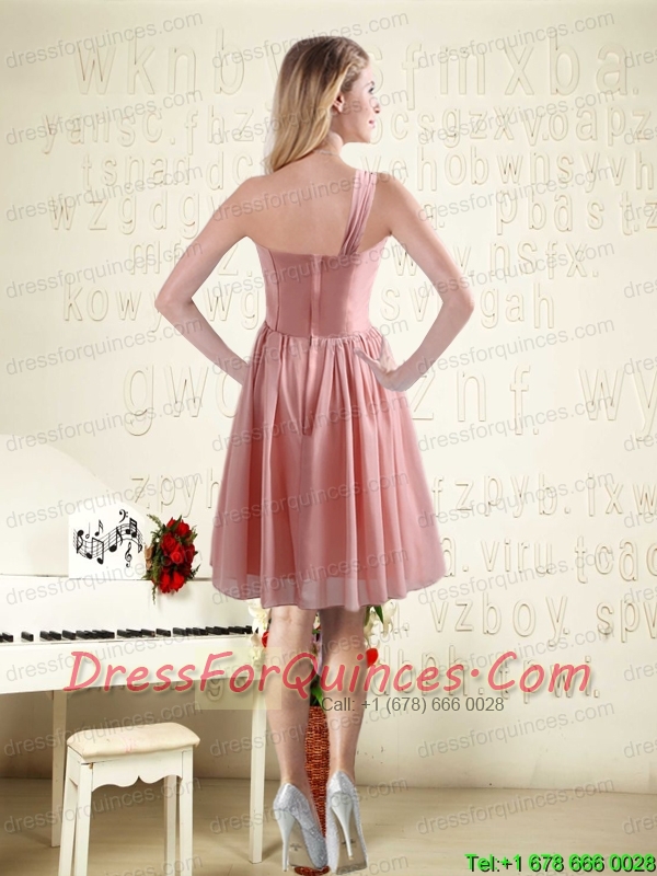 2015 One Shoulder Ruching Empire Chiffon Luxurious Junior Dresses