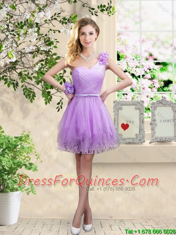 Cheap Hand Made Flowers Junior Dresses with One Shoulder