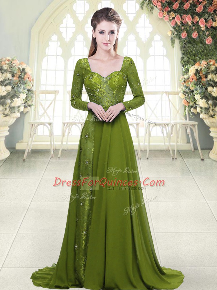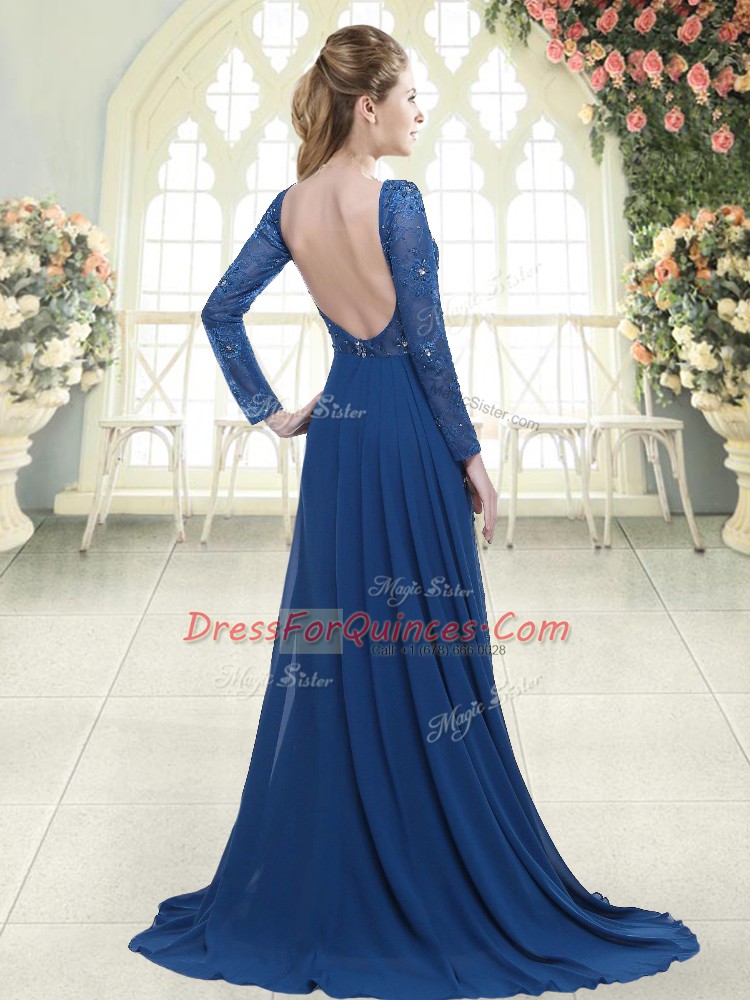 Modern Long Sleeves Sweep Train Beading Backless Evening Dress