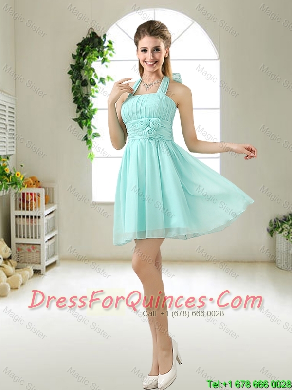 Modest Halter Top Hand Made Flowers Junior Dresses in Purple