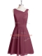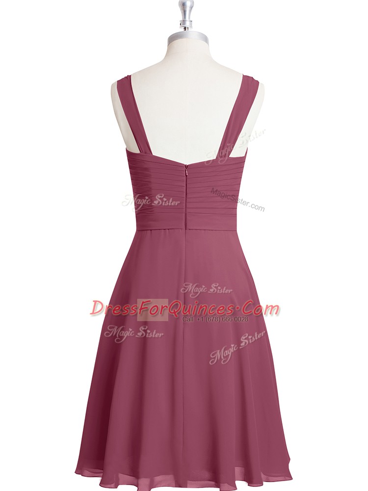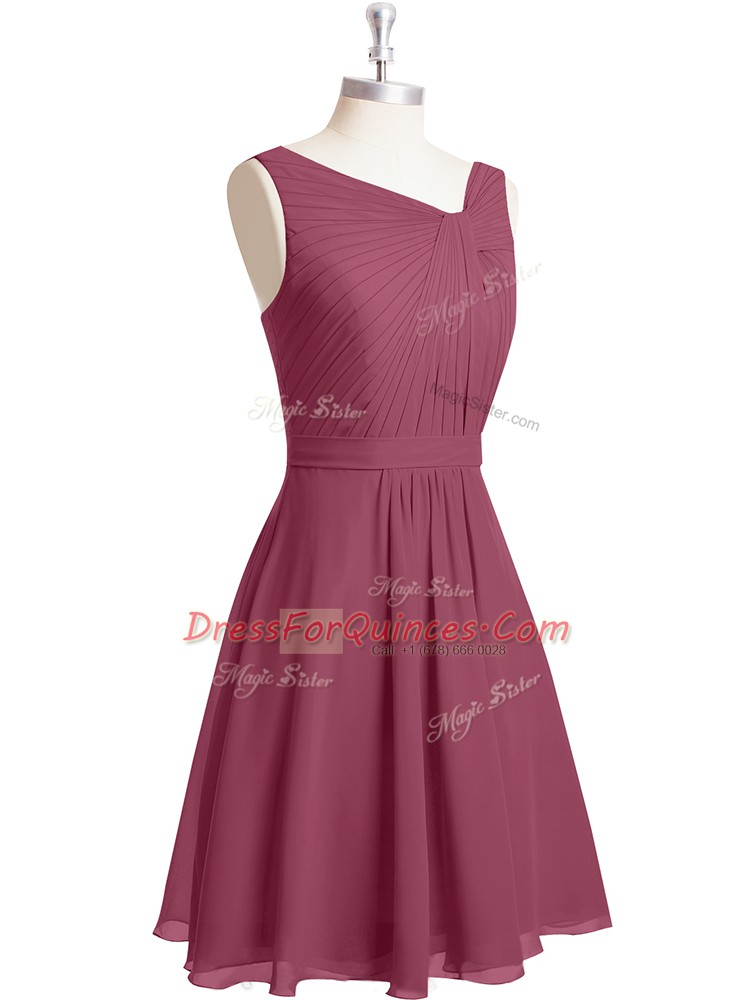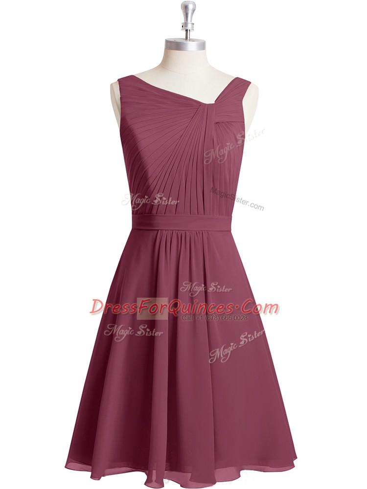 Sleeveless Chiffon Knee Length Zipper Prom Party Dress in Red with Ruching and Belt