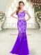 Sleeveless Tulle Floor Length Zipper Dress for Prom in Purple with Beading and Lace