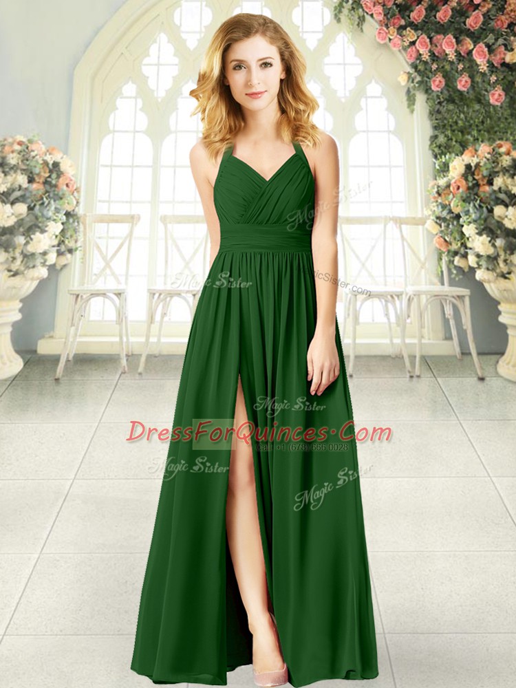 Superior Green Empire Chiffon Halter Top Sleeveless Ruching Floor Length Zipper Prom Dresses