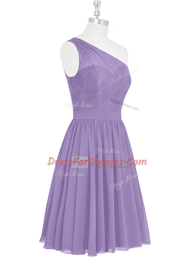 Superior Lavender A-line Lace Homecoming Dress Side Zipper Sleeveless Knee Length