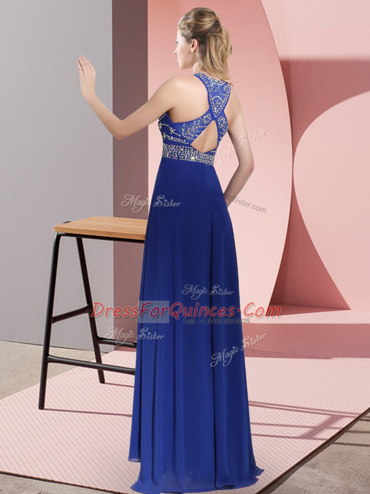 Sweep Train Empire Homecoming Dress Blue High-neck Satin Sleeveless Criss Cross