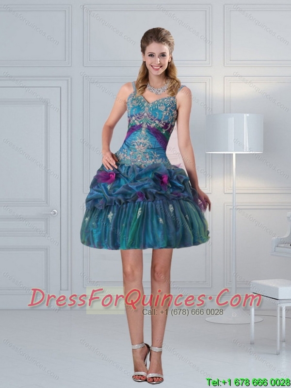 2015 Ball Gown Straps Multi Color Embroidery Prom Dresses with Hand Made Flower
