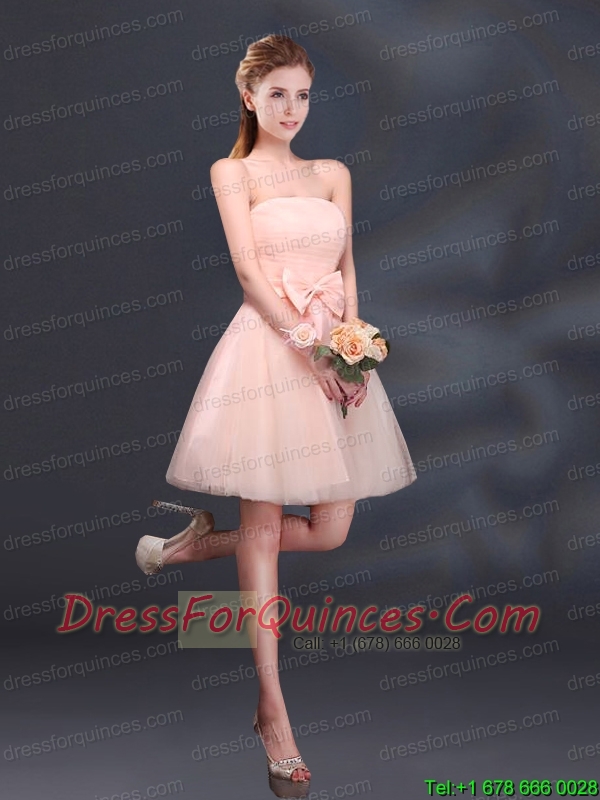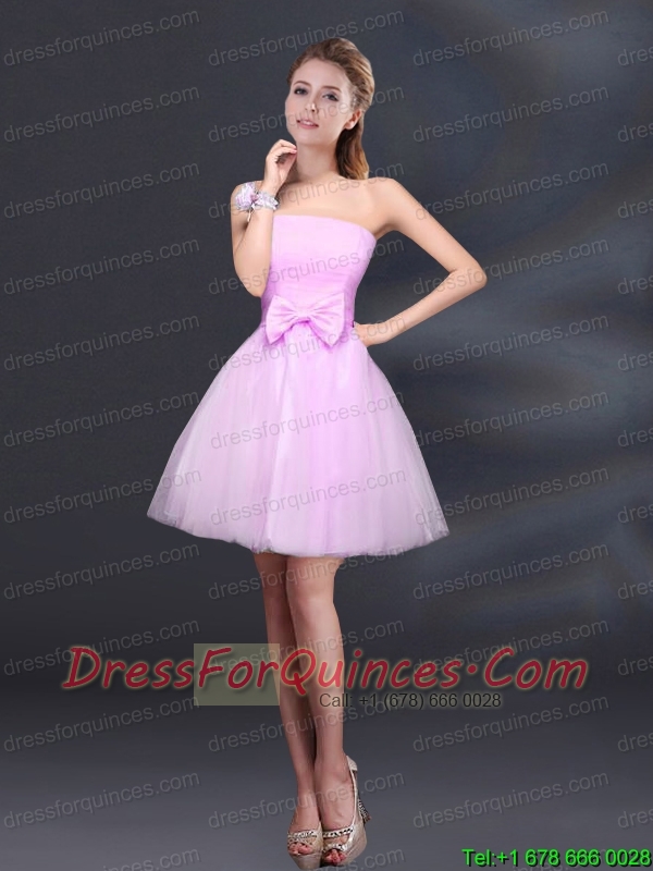 2015 Bowknot A Line Strapless Prom Dress with Lace Up