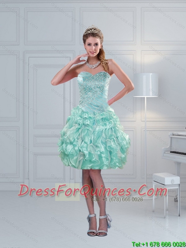 2015 Perfect Ruffled Sweetheart Beaded Prom Dresses in Apple Green