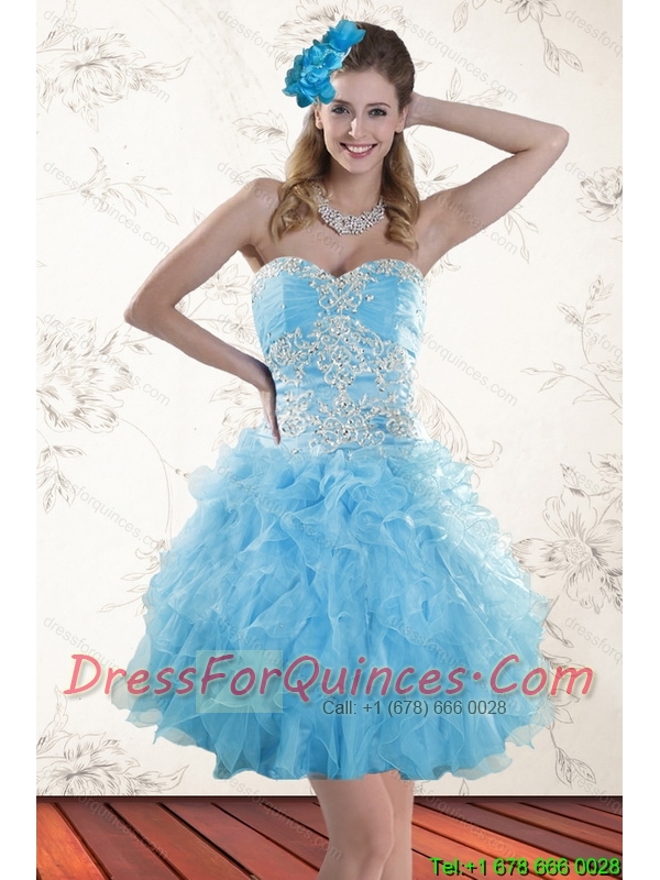 2015 Spring Baby Blue Sweetheart Prom Dresses with Embroidery