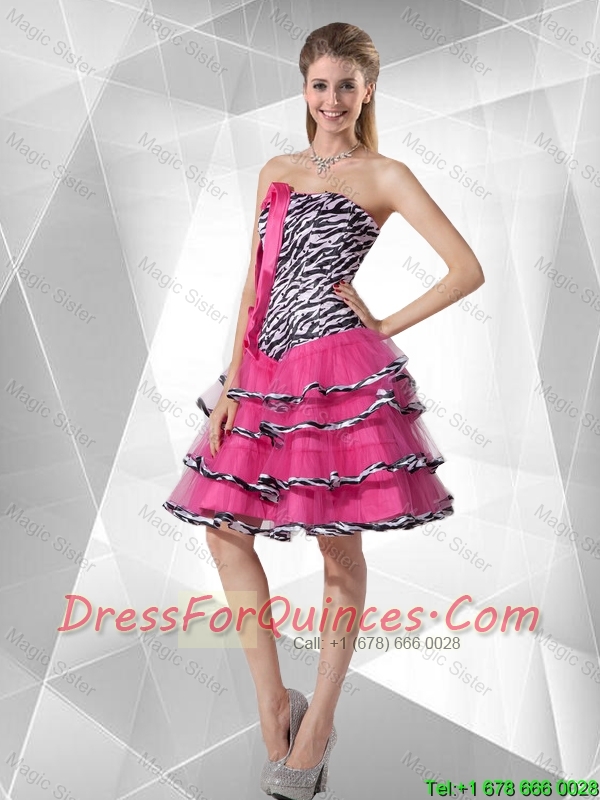 2016 Discount A Line Strapless Zebra Dama Dresses with Ruffled Layers