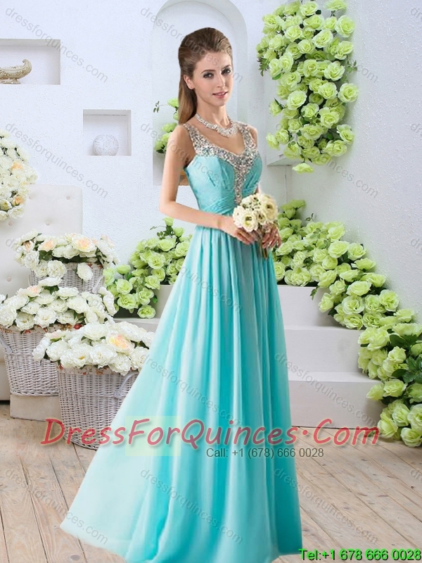 2016 Perfect Summer Beaded V Neck Side Zipper Prom Dresses in Aqua Blue