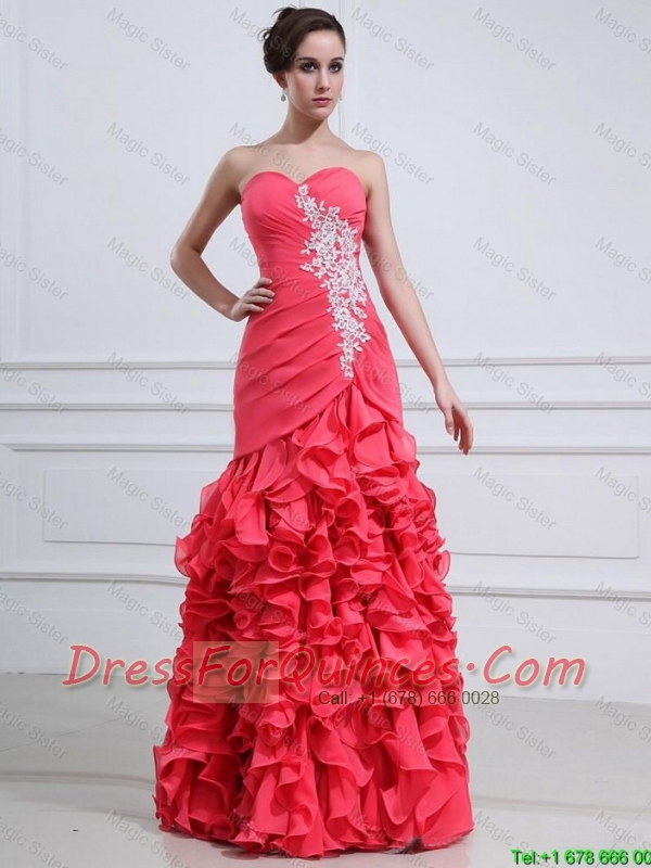 2016 Pretty Appliques and Ruffles Mermaid Prom Dress