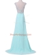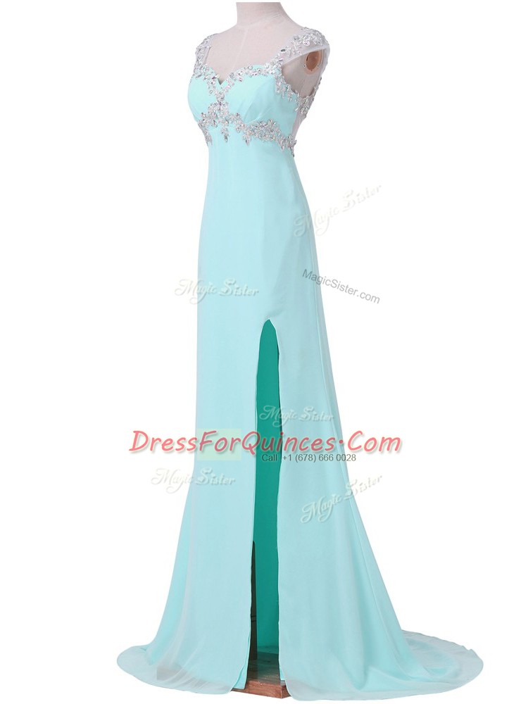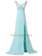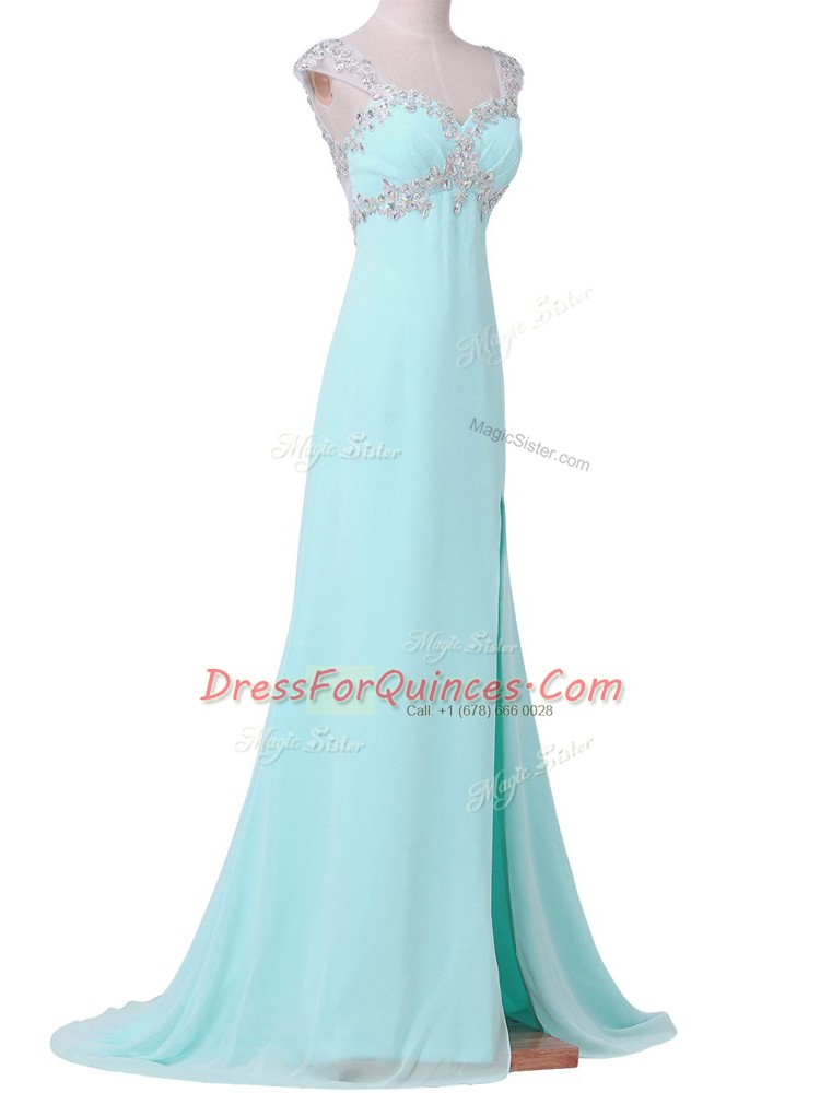 Admirable Beading Prom Evening Gown Aqua Blue Backless Cap Sleeves