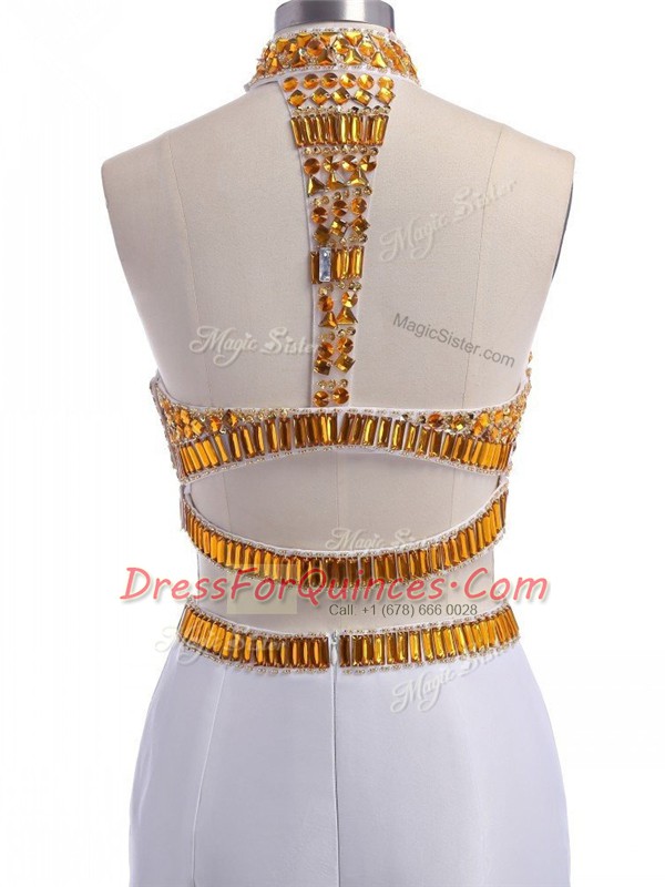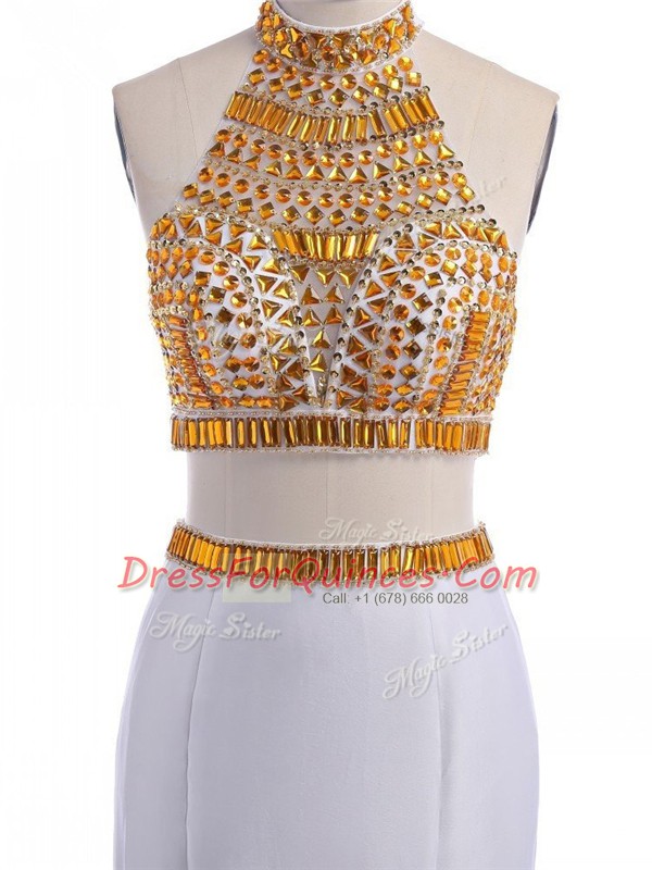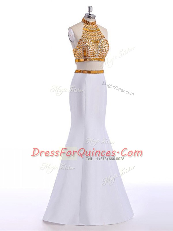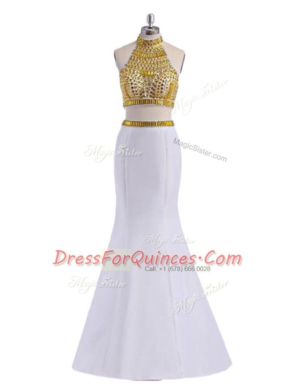 Affordable Floor Length Two Pieces Sleeveless White Evening Dress Lace Up