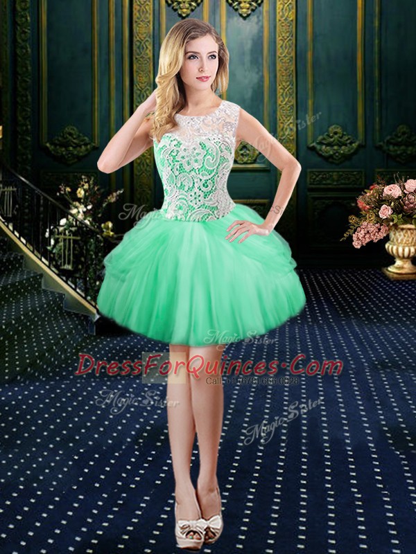Affordable Scoop Floor Length Apple Green Prom Dresses Tulle Sleeveless Lace