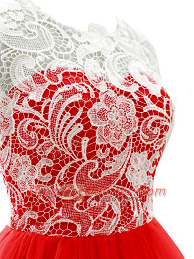 A-line Prom Evening Gown Red Scoop Chiffon Sleeveless Mini Length Clasp Handle