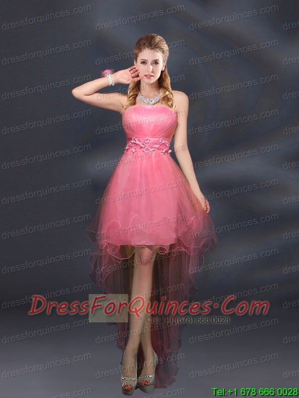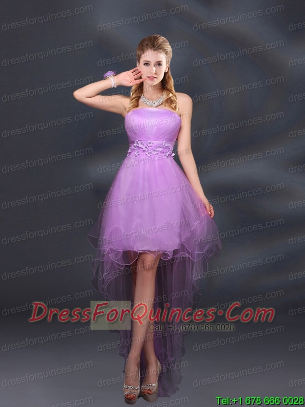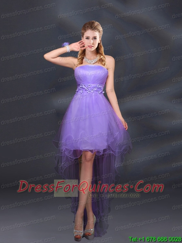Appliques and Ruffles A Line Strapless Prom Dresses