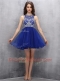 Beauteous Royal Blue Organza Zipper Scoop Sleeveless Mini Length Prom Evening Gown Beading
