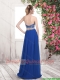 Beautiful Brush Train Halter Top Prom Dresses in Blue