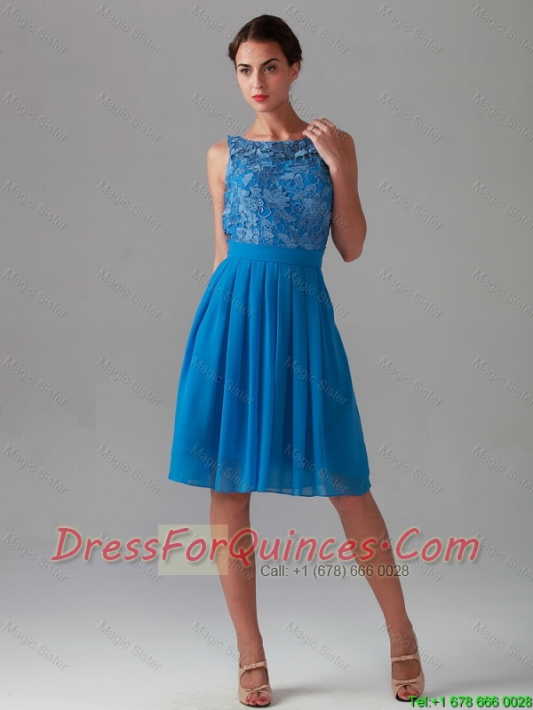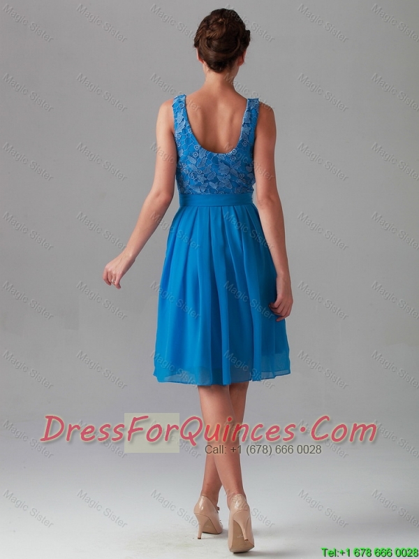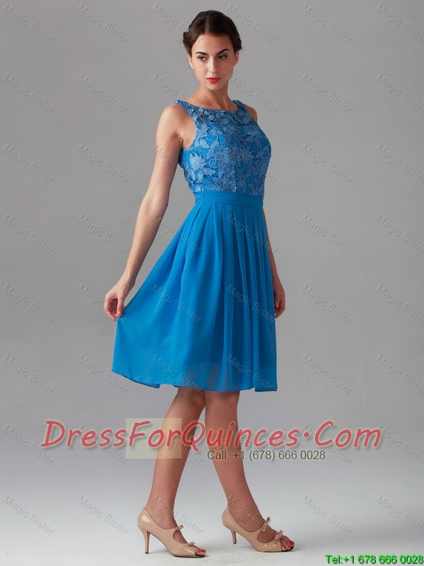 Beautiful Empire Bateau Blue Prom Dresses with Lace