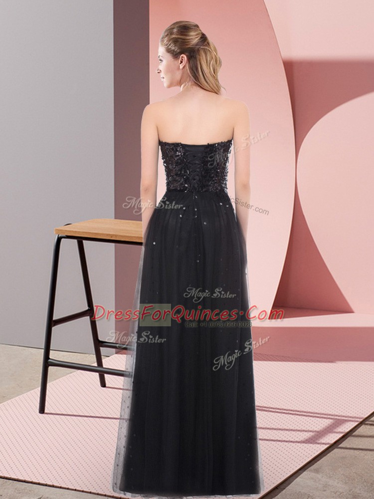 Charming Black Column/Sheath Sequins Prom Evening Gown Lace Up Tulle Sleeveless Floor Length