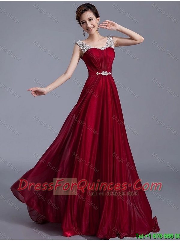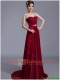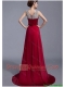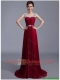 Cheap Brush Train Scoop Zipper Up Prom Dresses in Wine Red
