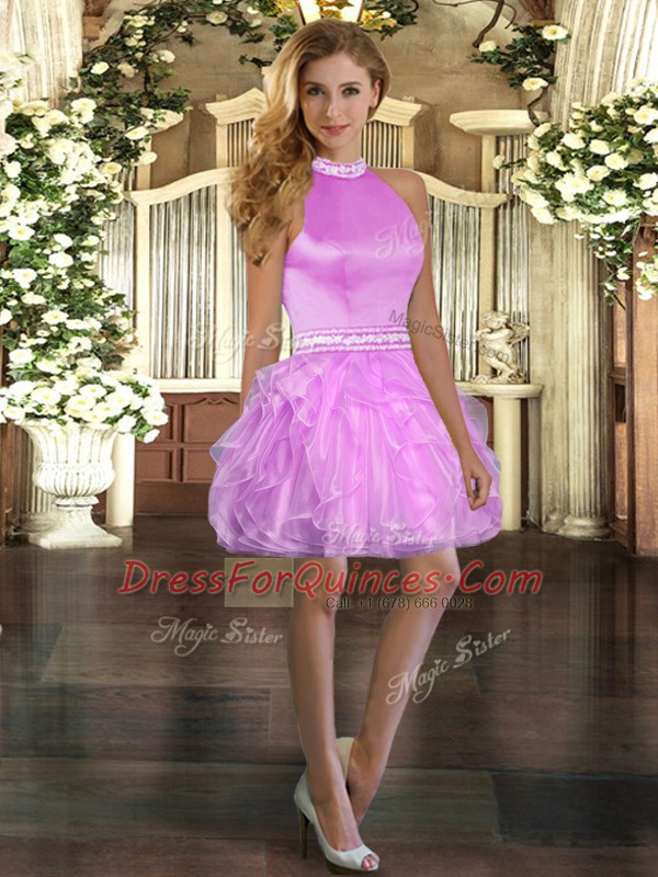Cheap Mini Length Backless Prom Party Dress Lilac for Prom and Party with Beading and Ruffles