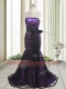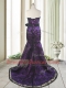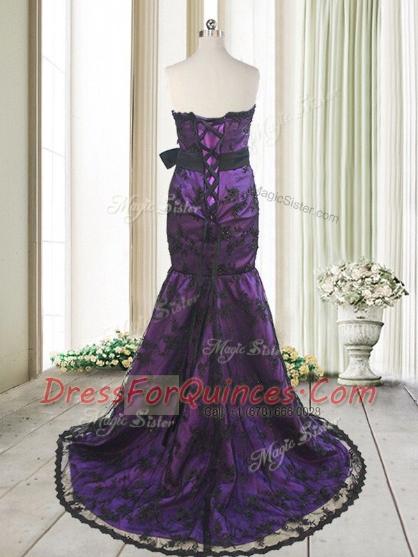 Chic Mermaid Lace Purple Sleeveless Sweep Train Bowknot and Belt With Train Prom Party Dress
