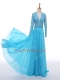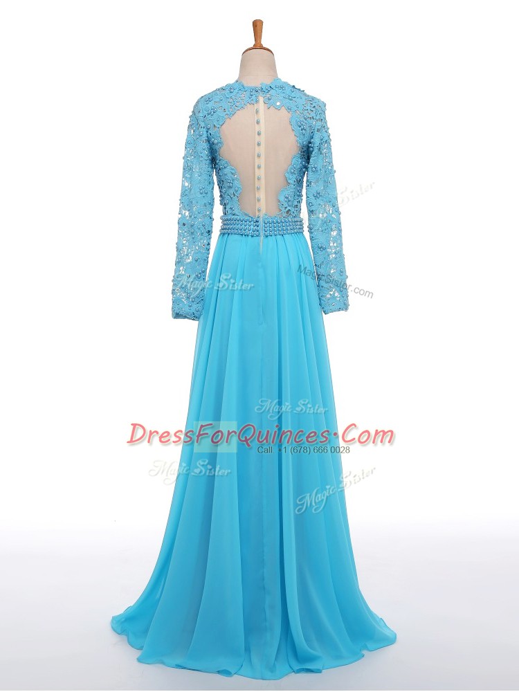 Chiffon Long Sleeves Floor Length Prom Dress and Lace and Appliques