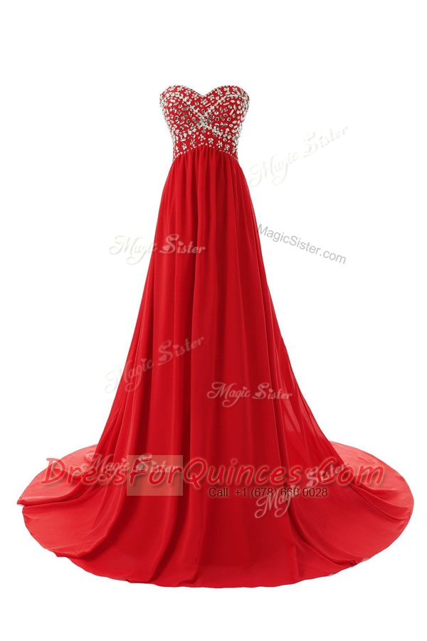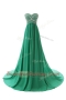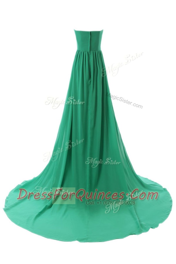 Chiffon Sweetheart Sleeveless Court Train Zipper Beading Prom Gown in Green