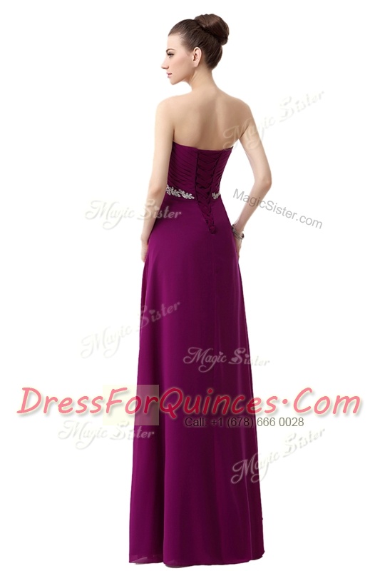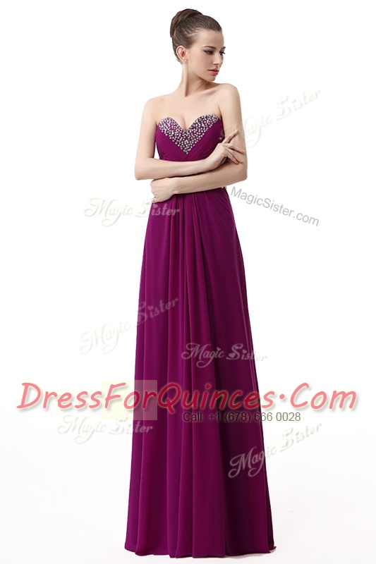 Chiffon Sweetheart Sleeveless Lace Up Beading and Ruching in Purple
