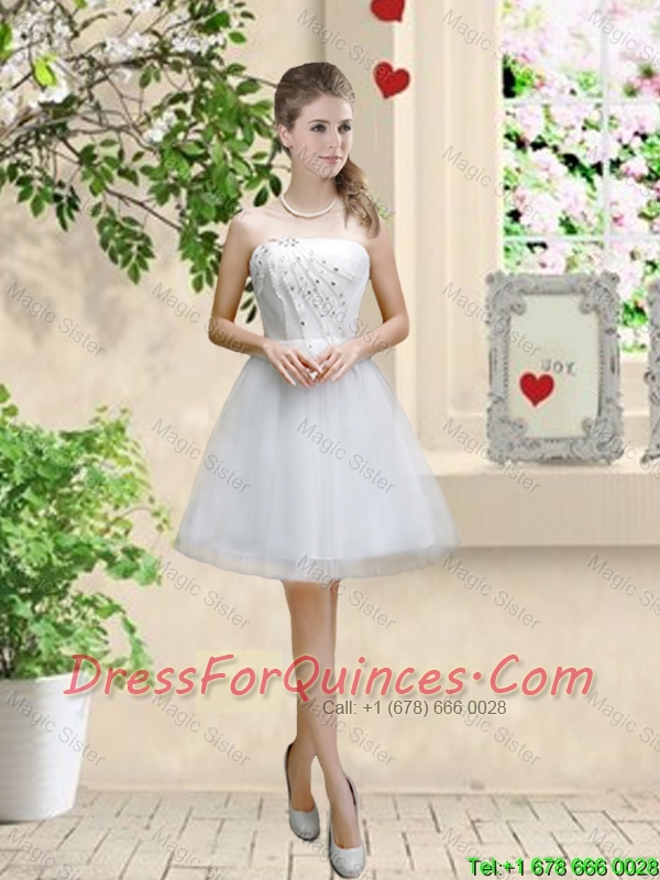 Classical Appliques and Beaded White Prom Dresses with Strapless