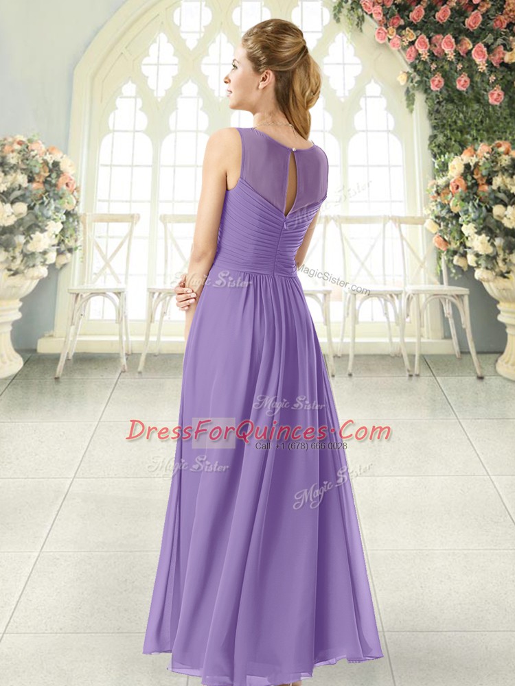 Classical Scoop Sleeveless Zipper Prom Party Dress Lavender Chiffon