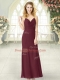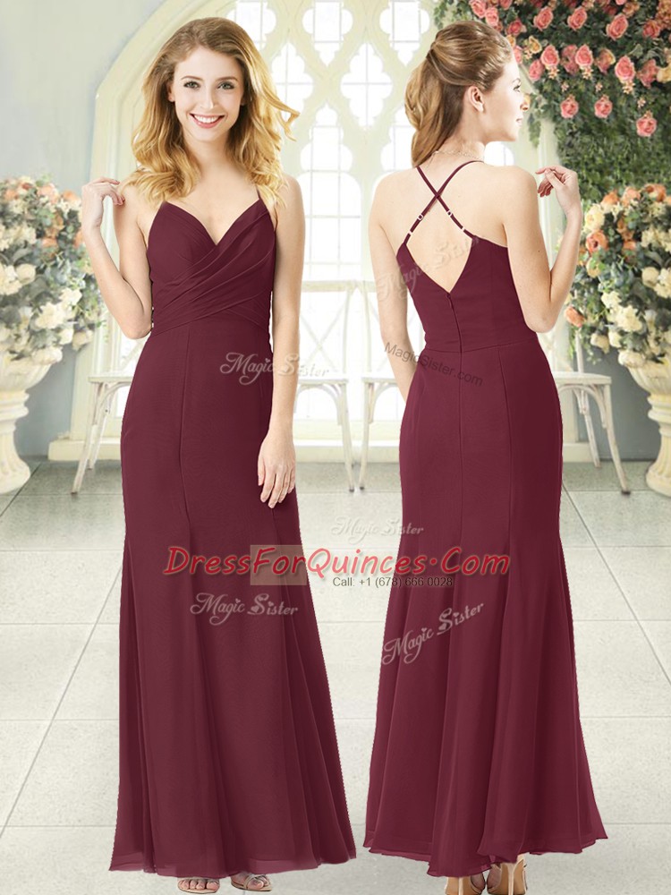 Column/Sheath Prom Evening Gown Burgundy Spaghetti Straps Chiffon Sleeveless Floor Length Zipper