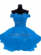 Decent Mini Length Blue Prom Evening Gown Organza Sleeveless Lace and Appliques and Ruffles