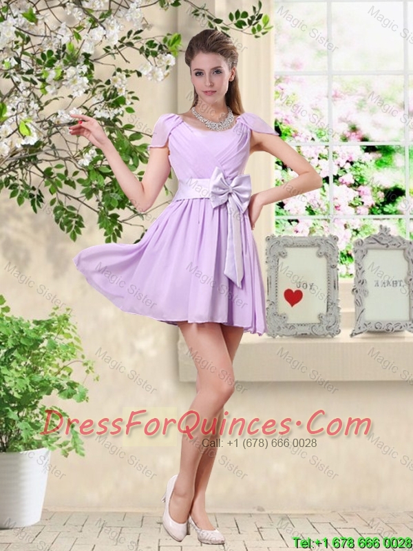Decent Scoop Bowknot Prom Dresses with Cap Sleeves