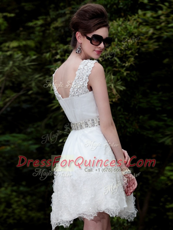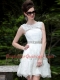 Delicate Scoop White Sleeveless Mini Length Beading and Belt Zipper