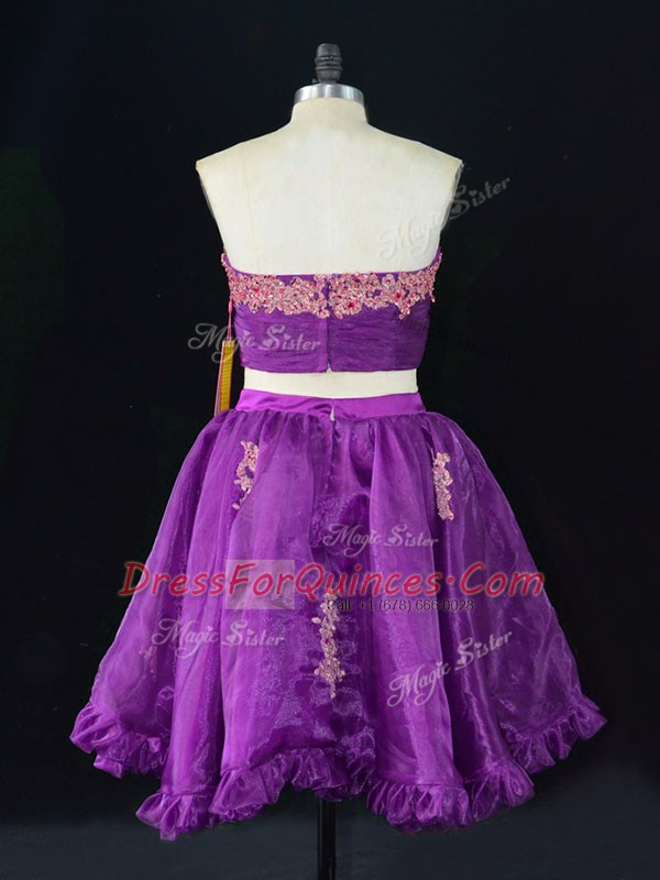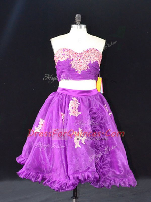 Eggplant Purple Sweetheart Neckline Appliques and Ruffles Prom Party Dress Sleeveless Zipper