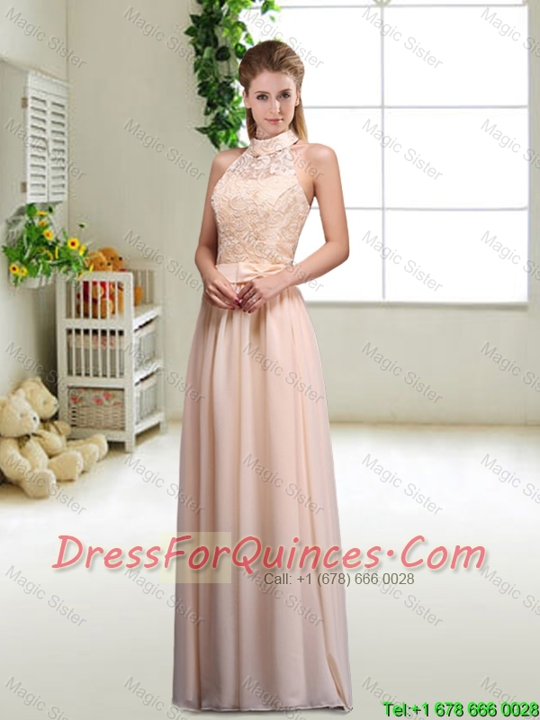 Elegant Laced and Bowknot Prom Dresses with Halter Top