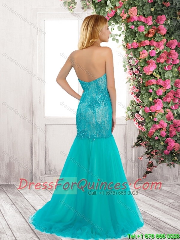 Elegant Mermaid Laced and Beaded Prom Dresses with Brush Train